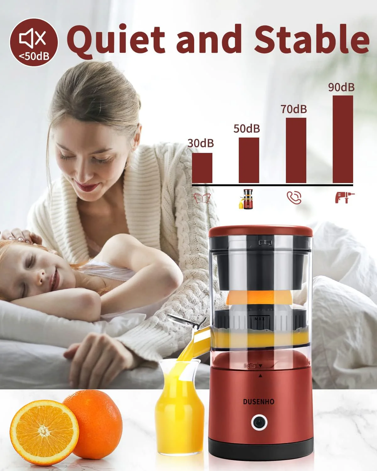 • 🍊【Freshly Squeezed Citrus Juicer】Our rechargeable juicer is perfect for all citrus fruits such as oranges, lemons, limes, and other organic citrus fruits up to 2.9 inches in diameter. Enjoy fresh, seedless fruit juice anytime!